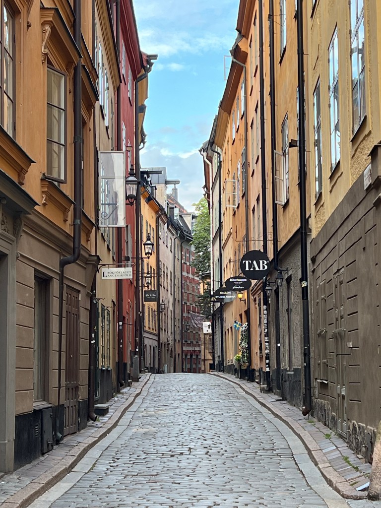 We went to the Fotografiska Museum, a fun contemporary museum set in an early 1900s building, which was an interesting juxtaposition. Gamla stan, Old Town, was very charming to meander through and admire the architecture on the narrow winding streets, but of course a bit touristy with souvenir boutiques. The best bars on the trip were in Stockholm – a speakeasy through a gorgeous art nouveau door, Lucy’s Flower Shop, Black Milk Gastro Bar, where we were the only ones and we got to know the bartender who gave us a private tour of the restaurant and kitchen before we left. We did some shopping in Stockholm – clothing stores, record stores, and bookstores. Shortly before our trip I got a Swedish perfume, which I love, so I made it a point to go to the original perfume shop in Stockholm – Stora Skuggan. Speaking of stores, we appreciated the Apoteks on every corner throughout the trip – so convenient and helpful. The green cross sign signaling an Apotek became a reassuring recurrence everywhere we went.