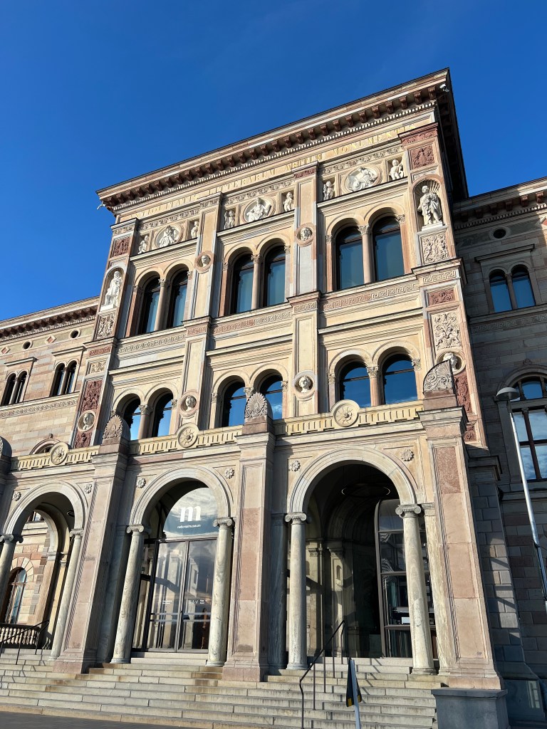 We went on a canal boat tour to enjoy the architecture from the water. Water is such a central part of life in Copenhagen with plenty of opportunities to swim in the canals, which my partner took advantage of at a couple different spots in the city. I am not a strong swimmer, so I watched from the concrete steps that act as a meeting place, and are perfect to enjoy a good book. Another central part of life in Copenhagen, getting around by bike, is something that I did take part in, although with a certain level of anxiety. So many bikes, such narrow bike lanes. It was fun to see the city by bike on the less crowded side streets, but it was challenging on the busy main streets. I may or may not have caused a small pile up in my hesitation and lack of experience on a bike in a big city, especially one where most people get around by bike. We enjoyed strolling through parks in Copenhagen, including the King’s Garden and Ørstedsparken. As far as museums go, we only went to one in Copenhagen – the Glyptotek, which has a beautiful salmon-colored facade and a courtyard garden in the center.