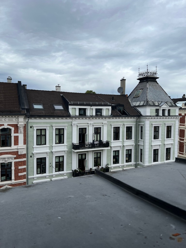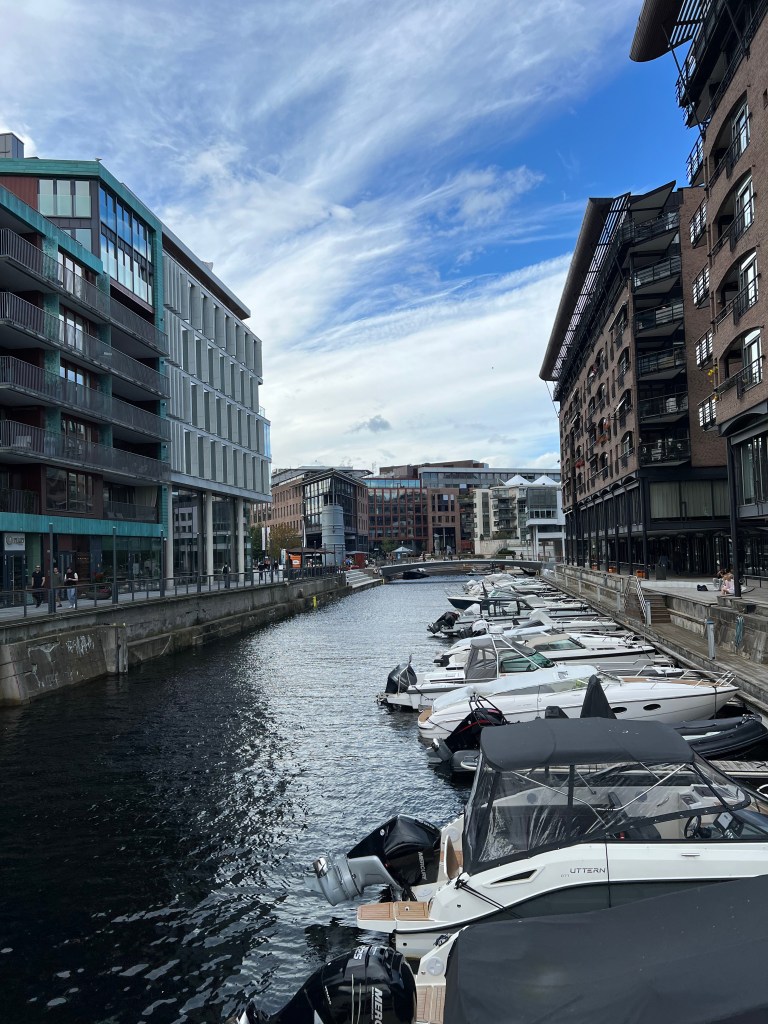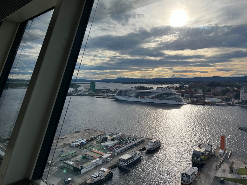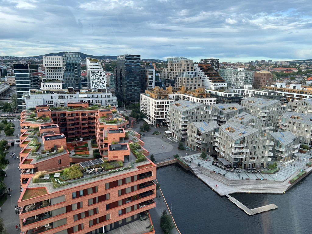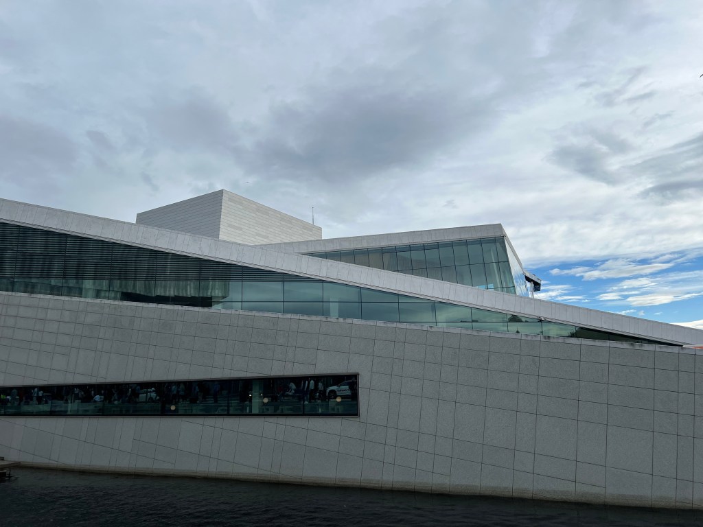 Onward to Norway! Our next destination on the trip was Oslo, and we took a train from Stockholm to Oslo. We arrived in Oslo around 10 pm. It was close to 11 pm by the time we got settled at the hotel and made our way to a pizza place downstairs, and it was still light out as we enjoyed our pizza outside. A perk of being close to the Arctic Circle! I was really looking forward to walking on the roof of the opera house in Oslo, but it was closed for an event while we were there. Surprise surprise, we went to more museums in Oslo – the National Museum, which was expansive and fabulous, with a nice restaurant on the ground floor, and a rooftop for views of the city. It was my favorite art museum on the trip. We also went to the Munch museum, dedicated to Edvard Munch, the Norwegian painter and printmaker. The Munch museum is in a cool high rise, with stunning views from the higher floors. Near the Munch museum we took a ferris wheel ride, and the views of the Oslofjord and the city were beautiful! I really liked the winding streets of Oslo. They made the city feel circular in a way. The architecture in Oslo felt like a good mix of older classical architecture and newer modern architecture. We walked around Bjørvika, a waterfront neighborhood full of new, modern architecture, which was, well, very Scandinavian – exactly what I picture when I think of modern Scandinavian architecture.