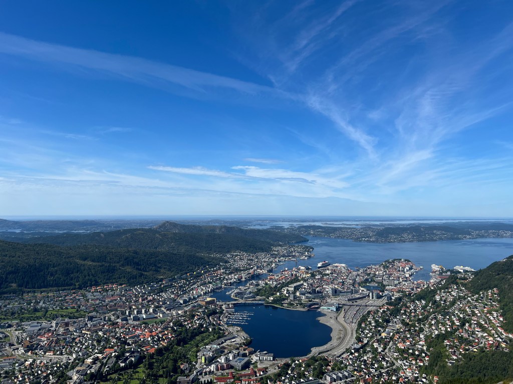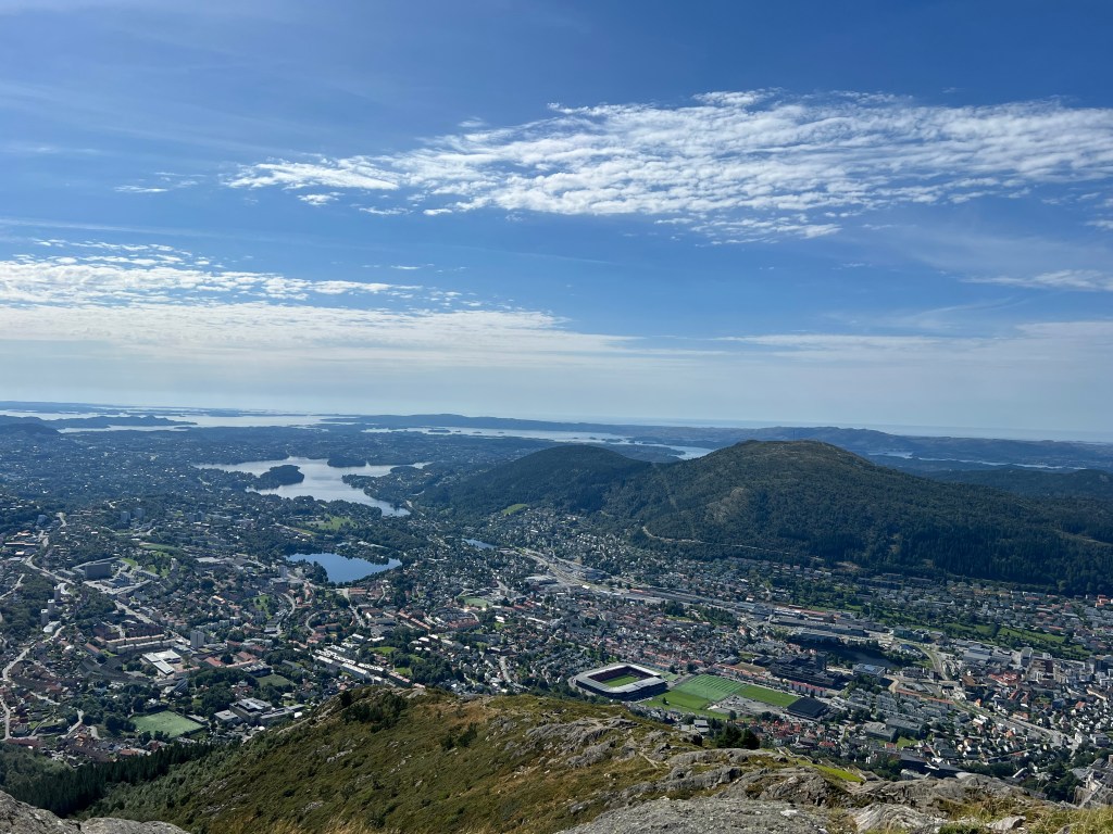 We spent the rest of the trip in Norway, on to the countryside after Oslo. We took the Bergen Line scenic train from Oslo to Bergen. It was 7 hours of just devastatingly beautiful views of the Norway’s vast natural landscape. It started out green and sunny, and progressed to overcast and snowy as the train rolled on. I couldn’t take my eyes off of the train window. I saw a moose out in the distance! We kept seeing moose crossing signs throughout Norway, hoping we would see one because our dog’s name is Moose, but sadly we never saw one again. Seeing the changes in terrain and weather as we rode along was one of the most spectacular things about the ride. Arriving in Bergen, it was a cute hilly and colorful town. The first thing we did was walk through the fish market along the water, and we had dinner at a touristy seafood place. It wasn’t the best meal of the trip, but we got the fish market experience. The next day we took the Fløibanen funicular to the top of Mount Fløyen overlooking the city. It was a quick cheap ride, and the view was beautiful! Once you get to the top you can simply enjoy the view or hike through trails. We enjoyed some ice cream while taking in the view, and I got to see some goats (my fav!). We also took the Ulriken643 cable car to the top of Bergen’s tallest mountains. This ride was a little rockier than the funicular, but the expansive views of Bergen and its surroundings were worth it. There’s a restaurant at the top, sheep meandering around with their loud bells, and hiking trails. We didn’t do a hike, but it was fun to see others set out on their treks and get smaller out in the distance as they got farther along in their journeys. The colorful wooden houses in Bryggen Wharf were fun to walk around, and we stumbled upon an artisan shop where I got a couple of artisan handmade Norwegian sweaters, one of my most treasured souvenirs from the trip. We had a fantastic meal in Bergen, my favorite on the trip, at Allmuen. I made a reservation for the wrong day, but they graciously took us anyway when we arrived, and thank god they did because the dishes were the best (especially the potatoes – I’m a sucker for potatoes!). There was some kind of literature / publishing party going on in the back of the restaurant, and eclectic art on the walls, which both added to the cosiness of the experience. They do a tasting menu, but we got there too late in the night to try it. I loved everything we had, so it worked out well anyway. Bergen did feel like a bit of tourist town, but it’s also a college town and it was fun to see that side of it with the university and the students.