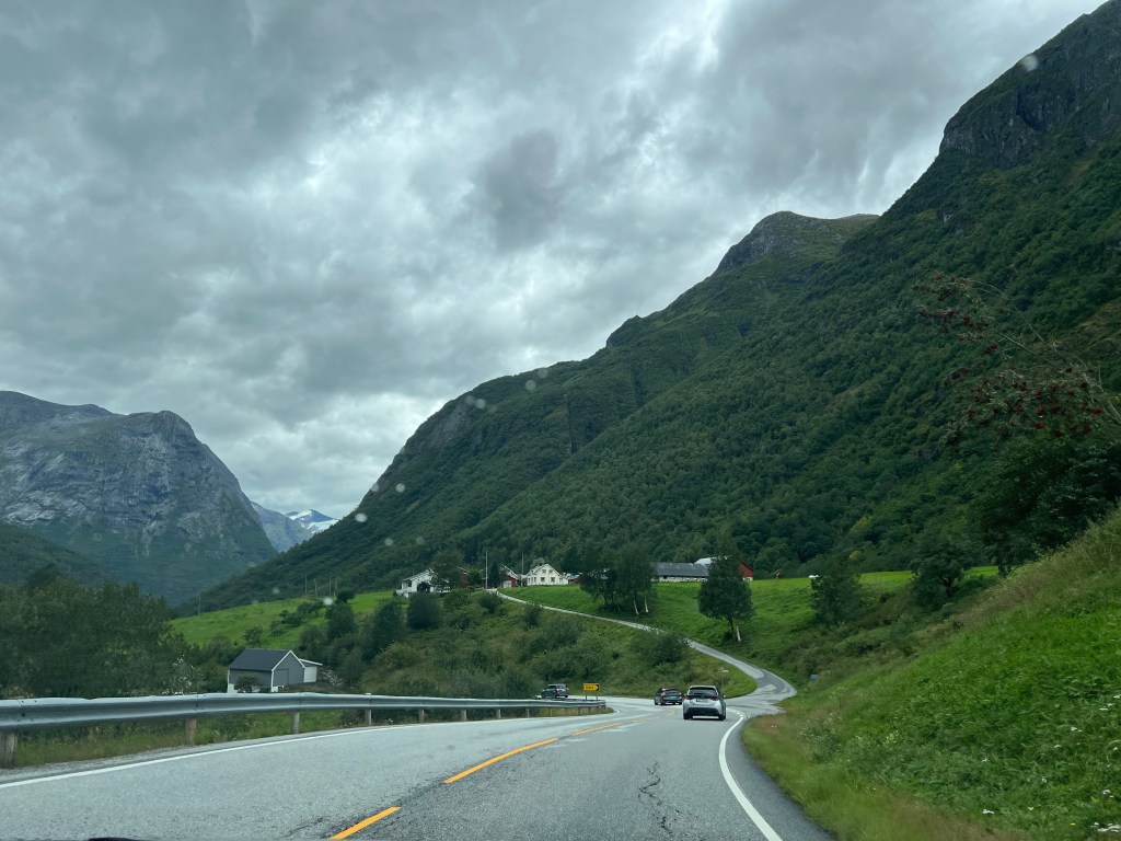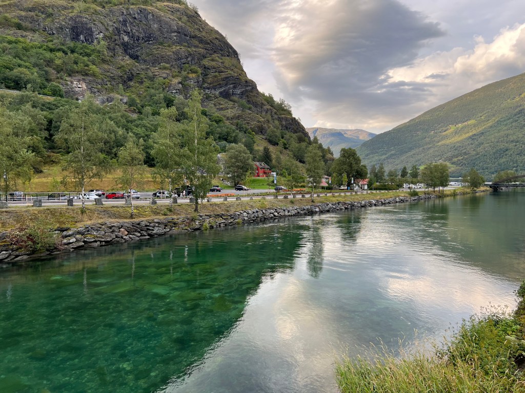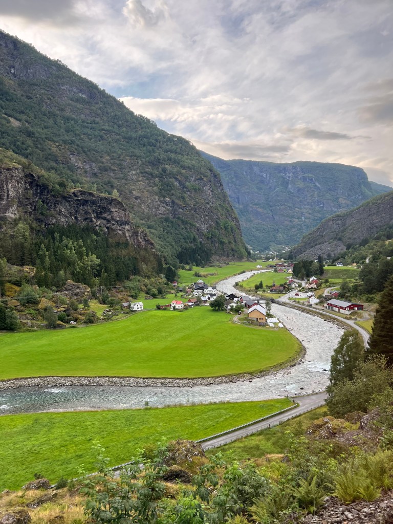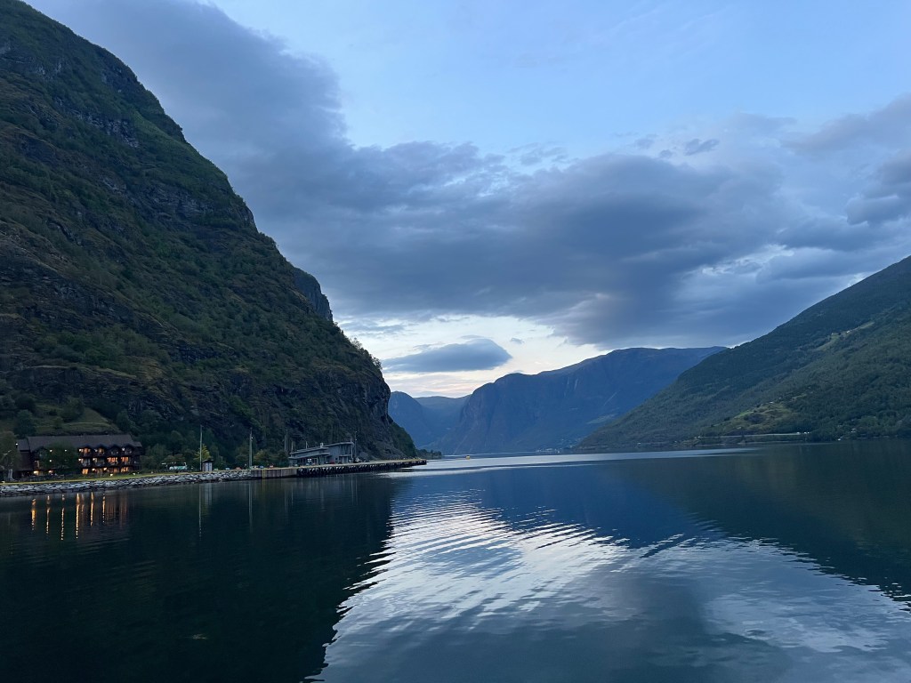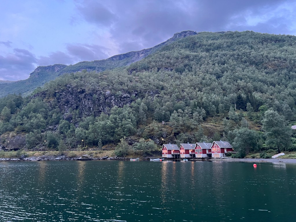 Heading out of Bergen, we rented a car – an electric car! Our first. It was a Hyundai Ioniq and I loved it. It was an adventure finding electric charging stations and figuring out how to use them…we also found ourselves worried about running out of battery and looking for charging stations frequently, especially since we didn’t always know where we were going and when we would find the next charging station. We drove to FlÃ¥m, which was our next destination for a night. Our hotel, FlÃ¥msbrygga Hotel, was right on the fjord and we had the most beautiful view of the fjord from our balcony. We had dinner at the hotel and tried the Viking meal with a beer pairing. After dinner we walked along the fjord, where people were sauna-ing & plunging into the fjord. We didn’t rent a floating sauna pod, but they looked like a lot of fun.