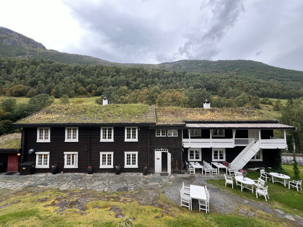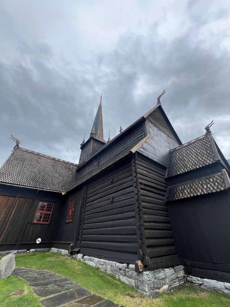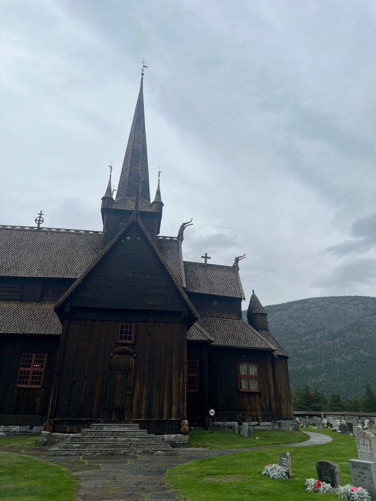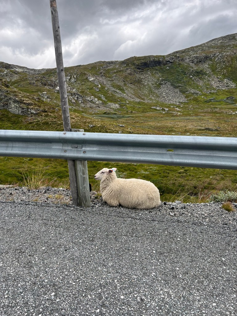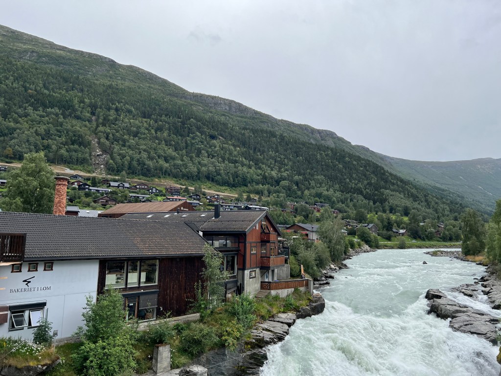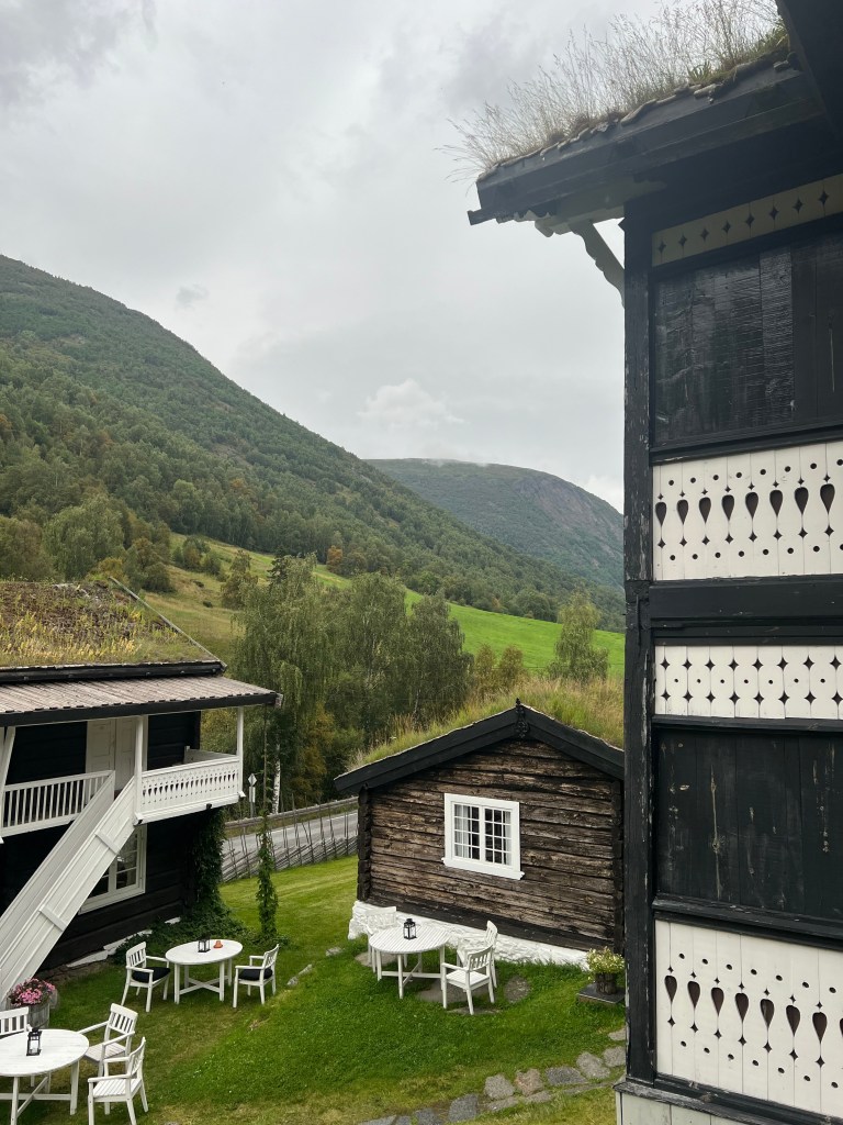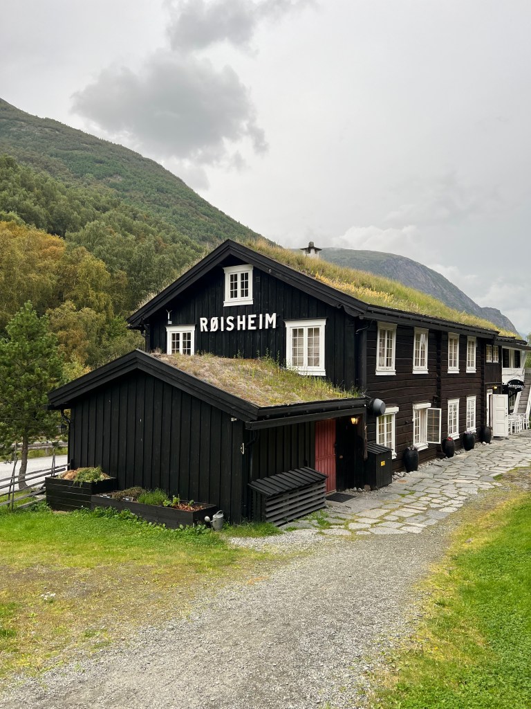 After a short time in FlÃ¥m, we continued our journey with our Hyundai Ioniq rental car. We embarked on Sognefjellsvegen, the highest mountain pass in northern Europe. This drive was at the top of the list as a highlight of the trip. It was very windy as we made our way upward in elevation. It was a tad daunting at the start. But as we got going, the terrain along the route was just beyond…green and lush in some areas, red and rocky in others, and dark and snowy the farther along we got, each turn revealing a somehow even more spectacular vision than the last. I felt like I was on a different planet. We saw sheep along the way, with their classic bells, frolicking on the road. Something to watch out for as you’re driving! This incredible drive brought us to Lom, where we stayed at Røisheim Hotel, a rustic historic hotel nestled on the hillside dating back to 1885. We stayed in the old stables, which was a fully wooden structure, and we had the coolest wooden barrel tub in the bathroom. Very cozy! We had dinner at the hotel’s restaurant, and we were notified that it was ready by a dinner bell that is rung everyday at dinnertime. The hotel had a scrumptious breakfast spread in the morning. All of the hotels that we stayed at in Scandinavia did actually – breakfast spreads for days.