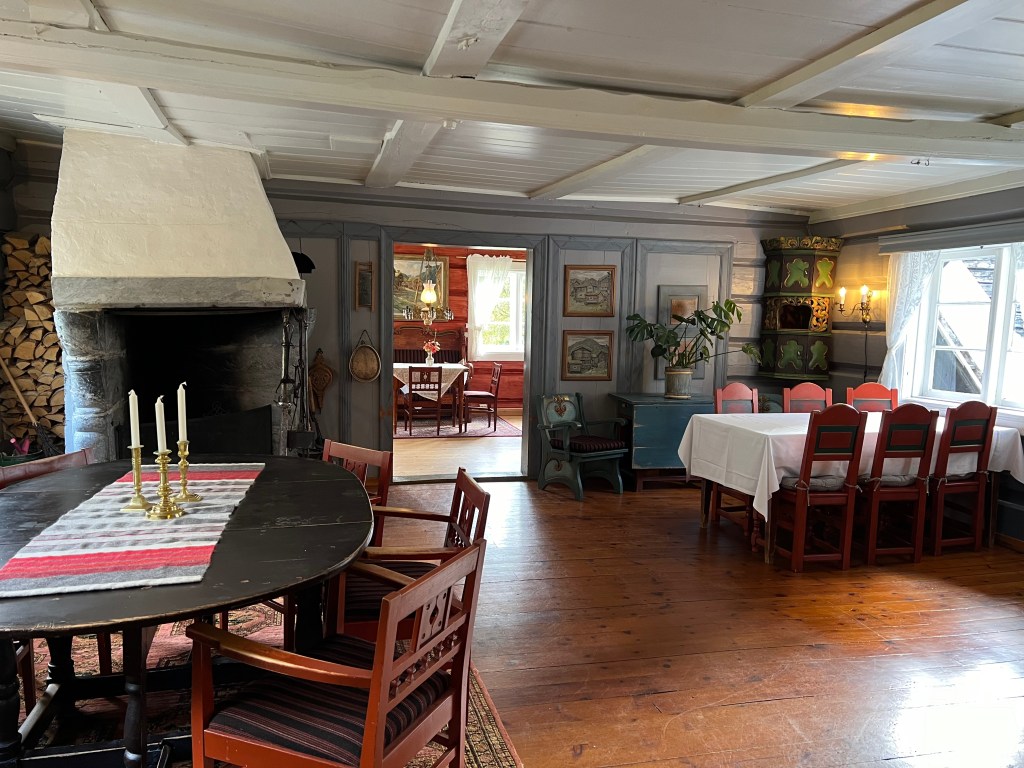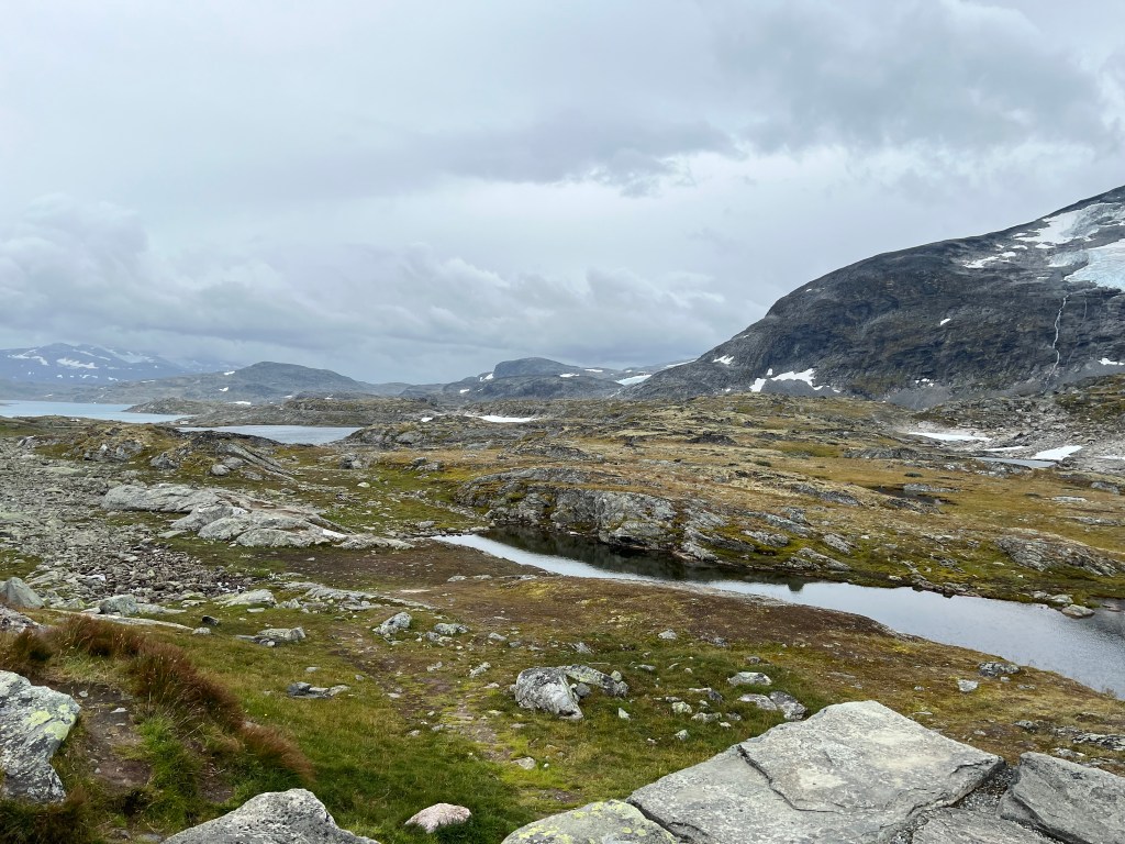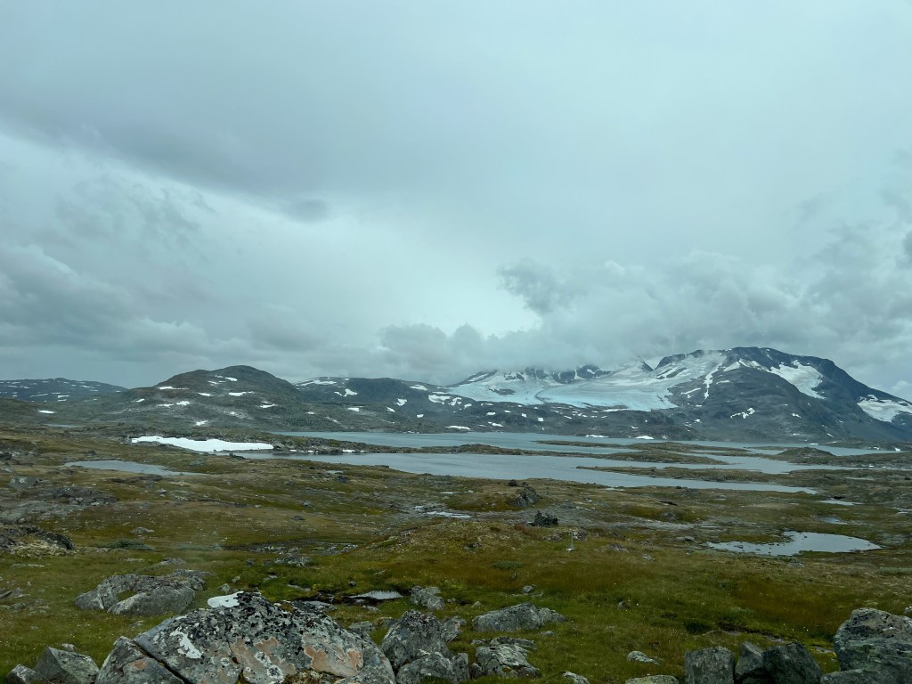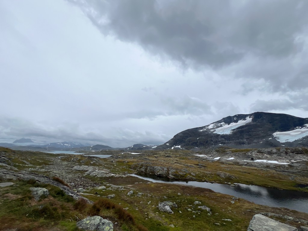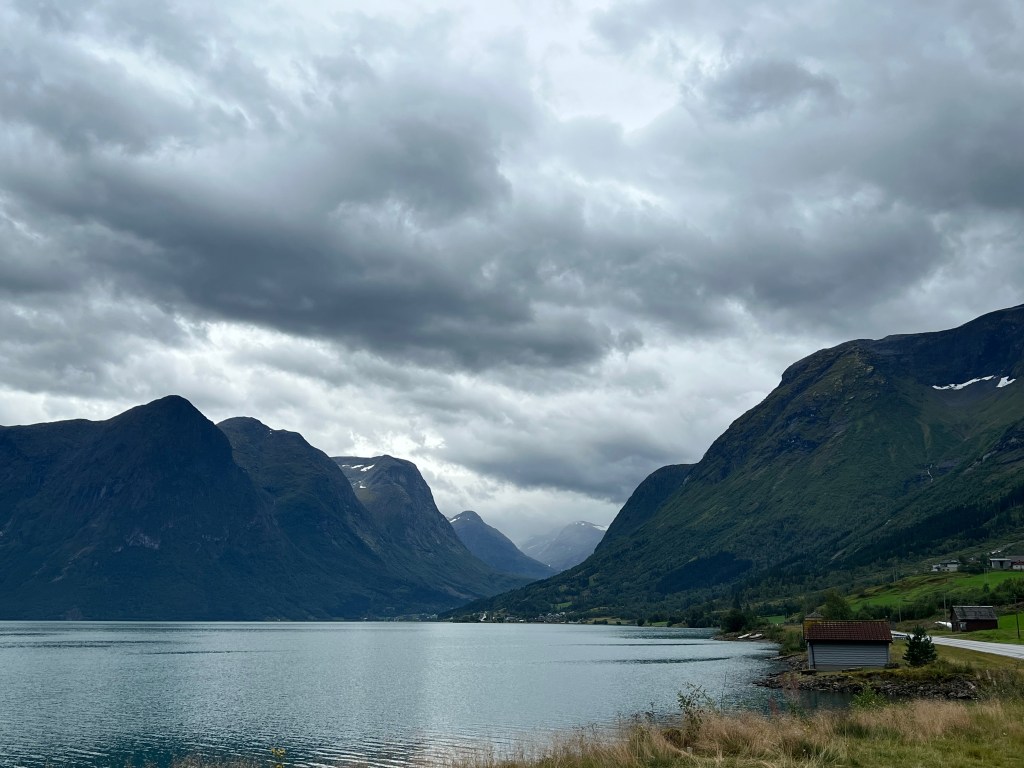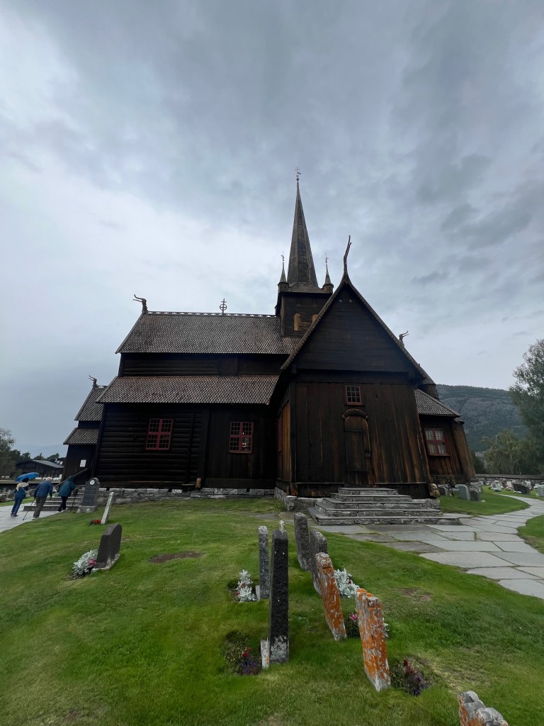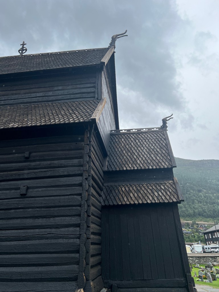 After a short time in FlÃ¥m, we continued our journey with our Hyundai Ioniq rental car. We embarked on Sognefjellsvegen, the highest mountain pass in northern Europe. This drive was at the top of the list as a highlight of the trip. It was very windy as we made our way upward in elevation. It was a tad daunting at the start. But as we got going, the terrain along the route was just beyond…green and lush in some areas, red and rocky in others, and dark and snowy the farther along we got, each turn revealing a somehow even more spectacular vision than the last. I felt like I was on a different planet. We saw sheep along the way, with their classic bells, frolicking on the road. Something to watch out for as you’re driving! This incredible drive brought us to Lom, where we stayed at Røisheim Hotel, a rustic historic hotel nestled on the hillside dating back to 1885. We stayed in the old stables, which was a fully wooden structure, and we had the coolest wooden barrel tub in the bathroom. Very cozy! We had dinner at the hotel’s restaurant, and we were notified that it was ready by a dinner bell that is rung everyday at dinnertime. The hotel had a scrumptious breakfast spread in the morning. All of the hotels that we stayed at in Scandinavia did actually – breakfast spreads for days.